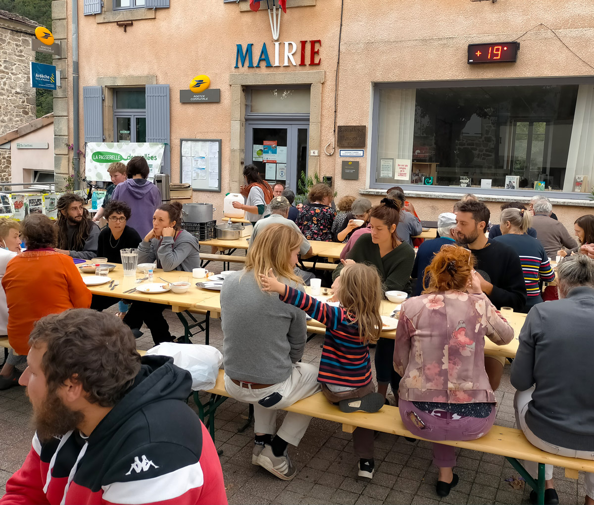 En centre-Ardèche, l’association La passerelle des vallées est créatrice d’un « espace de vie sociale » agréé par la CAF de l’Ardèche. Animée par les bénévoles « tout terrain » et les personnes participantes, coordonnée par des salariés militants de la re-création du lien social, l’association est soutenue par de nombreux partenaires.